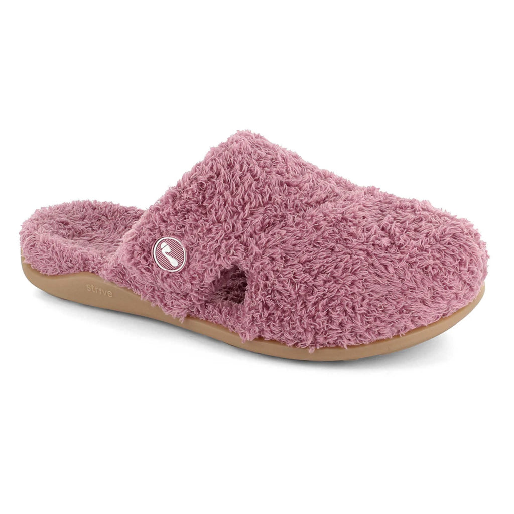 This ladies slipper is pure snuggly comfort. Soft upper with adjustable touch and close fit, and memory foam footbed cushioning. Incorporates Strive's comfortable supportive foot bed technology. A durable, lightweight, EVA sole with rubber pods for excellent grip. Standard D+ Width Fitting. Available in whole UK sizes, as well as a size UK 6.5. Please note that Strive slippers come up generous in size.